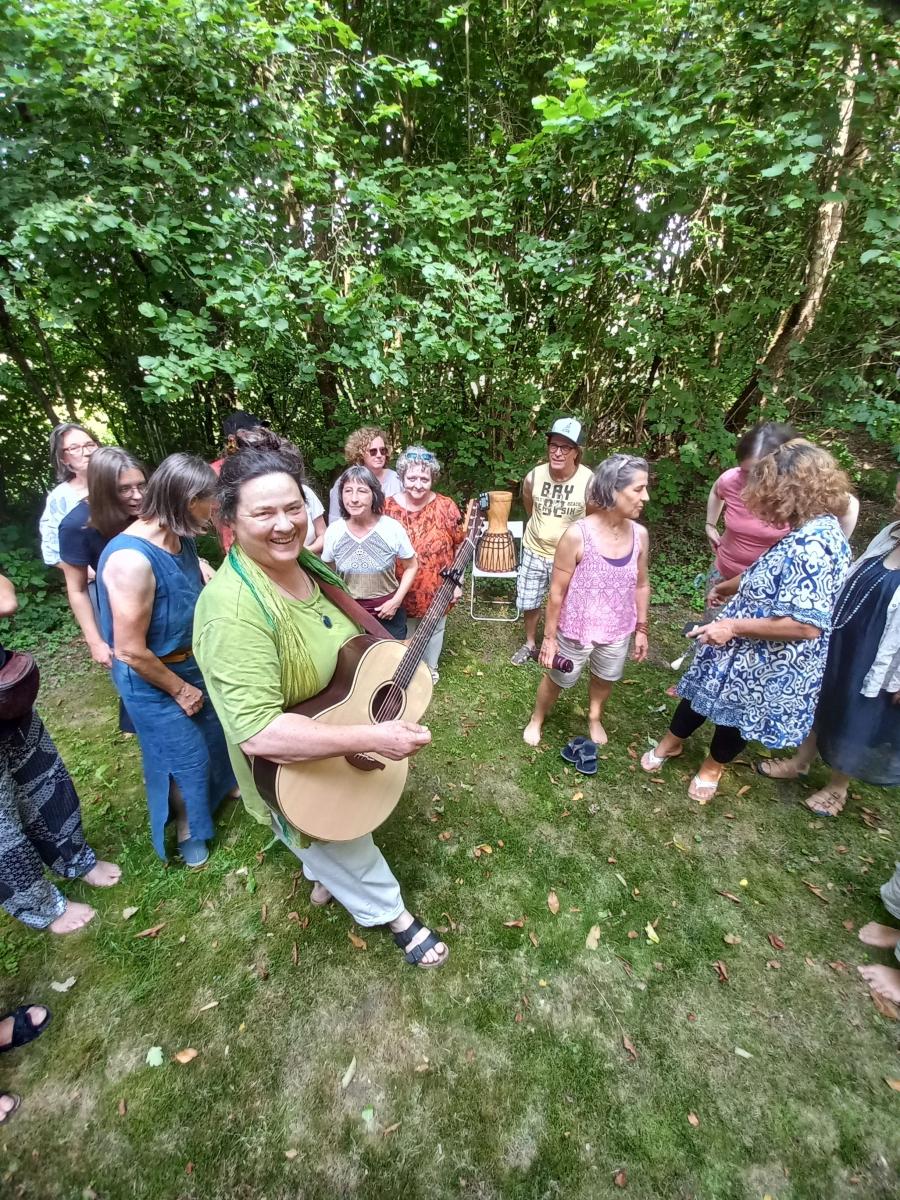 Einfache Stimmübungen helfen dabei, die eigene Stimme wahrzunehmen, frei klingen zu lassen und unseren eigenen Ton zu finden. Durch das gemeinsame Tönen, Singen und Chanten verbinden wir uns mit unserem innersten Sein und Lebenskraft. Unser Verstand und unsere Emotionen können zur Ruhe kommen und wir erfahren unsere Verbundenheit untereinander und mit dem Leben. Gemeinsam gehen wir auf eine singende Reise durch die verschiedensten Seelenlandschaften: Meditative Lieder, die in der Stille ausklingen, wechseln sich dabei mit ausgelassenen Liedern voller ansteckender Lebendigkeit ab. Neben den Lieder von Iria singen wir auch Mantras und Chants aus aller Welt und verbinden uns so auch mit der Weisheit und Kraft anderer Kulturen. So ganz nebenbei werden Glückshormone ausgeschüttet und unser Immunsystem gestärkt…