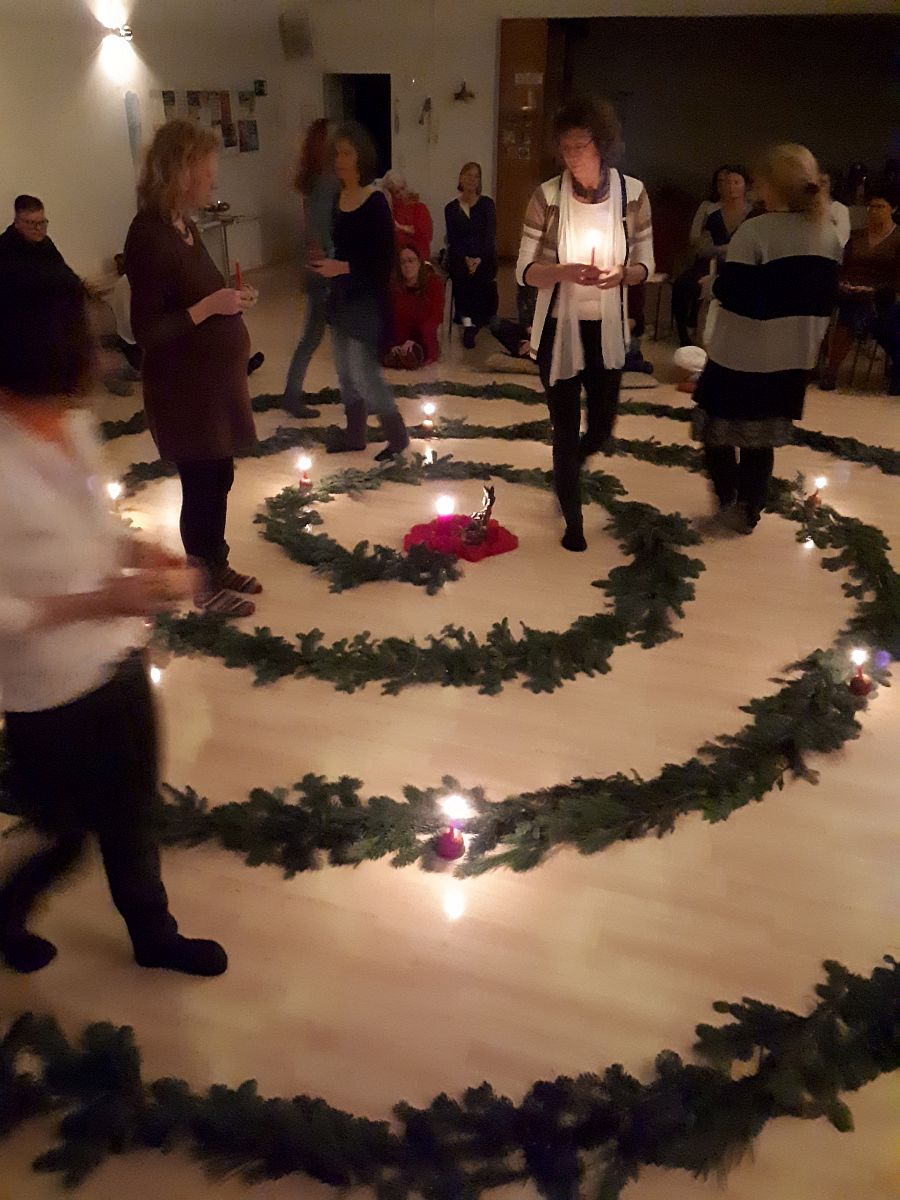 Zuerst gab es ein fröhliches Fest voller Freude und Leichtigkeit .... in der Pause legten fleißige Helfer die Spirale mit Tannenzweigen und Wolfgang spielt dazu Klavier. ...... "wir zünden eine Kerze an"..... das erste Licht in der Mitte leuchtet. Mit jedem, der den Weg durch die Spirale machte, leuchteten mehr und mehr Kerzen. Es war ein wunderschöner, stimmungsvoller Abend.